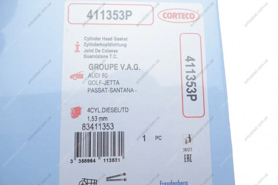 Прокладка, головка цилиндра CORTECO 411353P