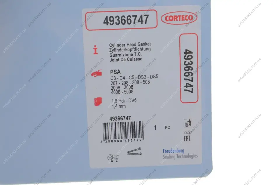 Прокладка головки блока металева CORTECO 49366747