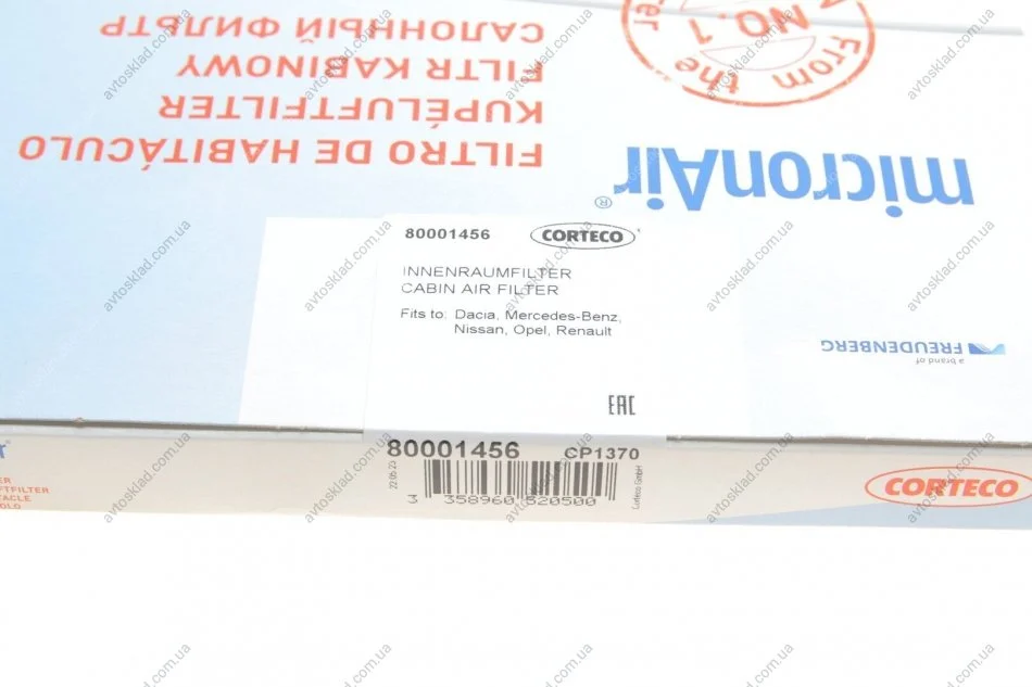 Фильтр, воздух во внутренном пространстве CORTECO 8000 1456