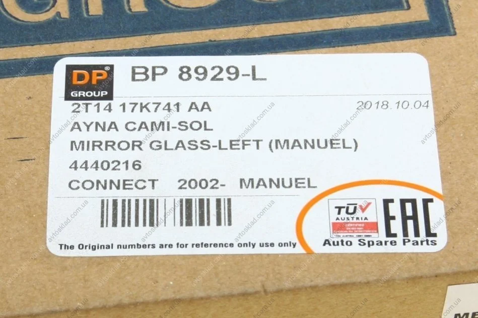 Вставка зеркала (без подогрева) Ford Connect 02- L DP GROUP BP 8929-L