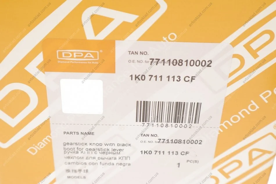 Рукоятка рычага КП с обшивкой рычага 5ст DPA 77110810002