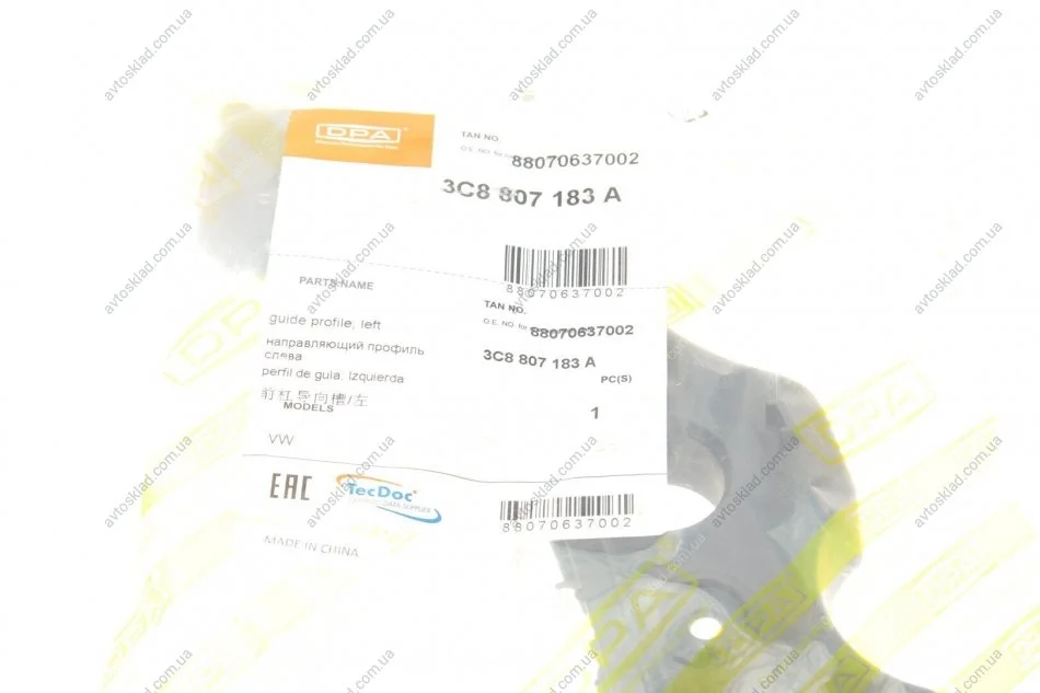 Направляющий профиль; левый передний DPA 88070637002
