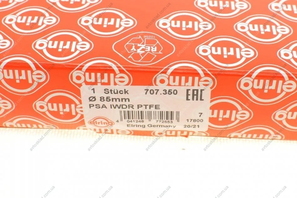 Уплотняющее кольцо, коленчатый вал ELRING 707.350