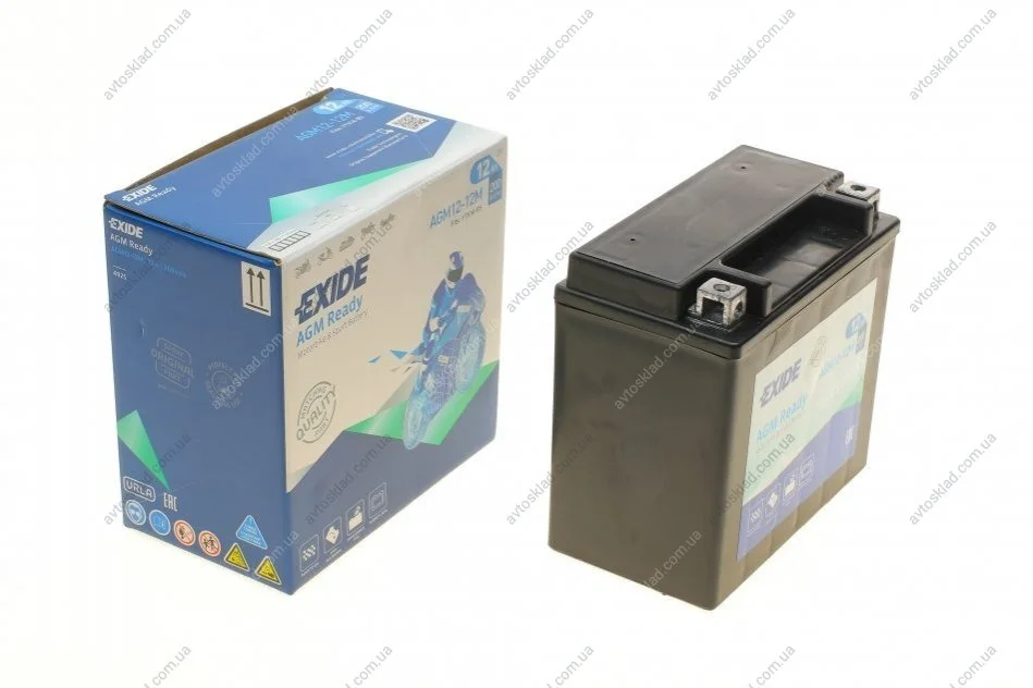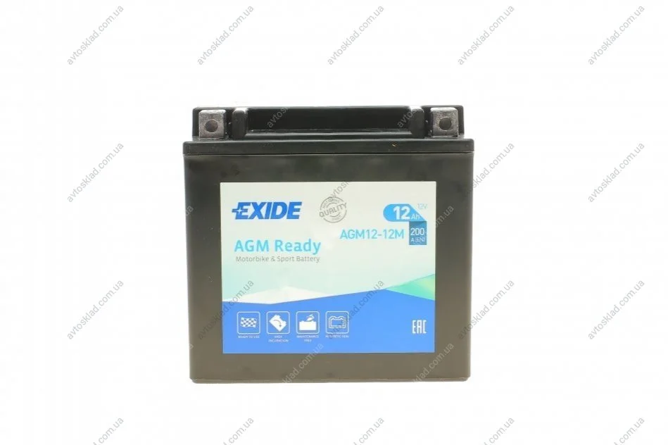 Аккумулятор залитый и заряженный AGM 12Ah 200A EXIDE AGM12-12M