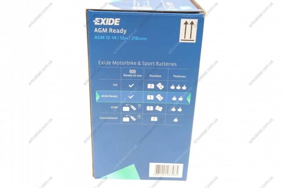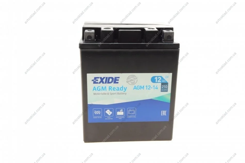 Аккумулятор залитый и заряженный AGM 12Ah 210A EXIDE AGM12-14