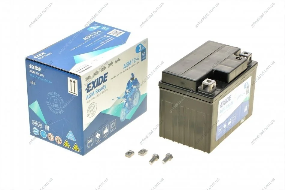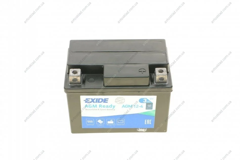 Аккумулятор залитый и заряженный AGM 3Ah 50A EXIDE AGM12-4
