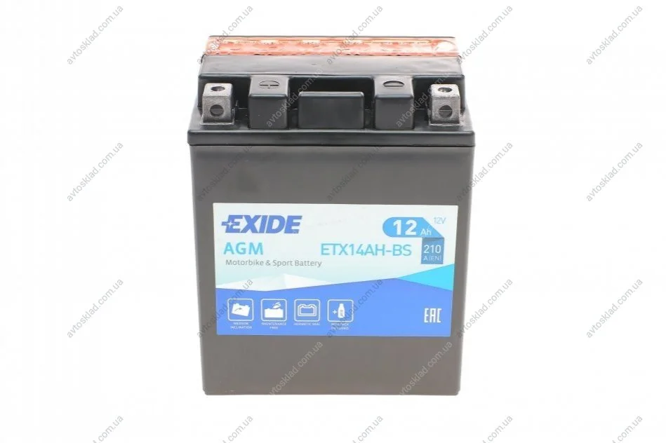 Аккумулятор 12Ah-12v AGM (134х89х164) L, EN210 EXIDE ETX14AH-BS