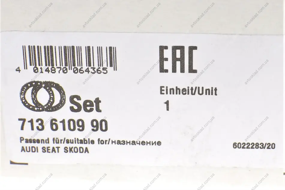 Ступица в сборе AUDI A3, VW CADDY III 12- передн. мост FAG 713 6109 90