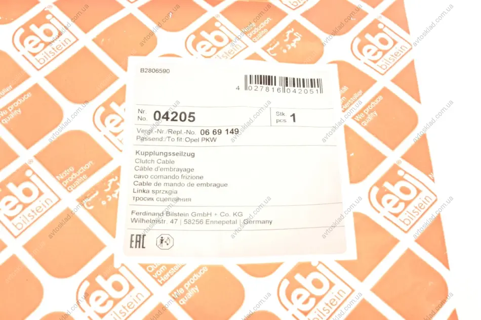 Трос сцепления Omega A 1986 - 1994 (Febi) FEBI BILSTEIN 04205