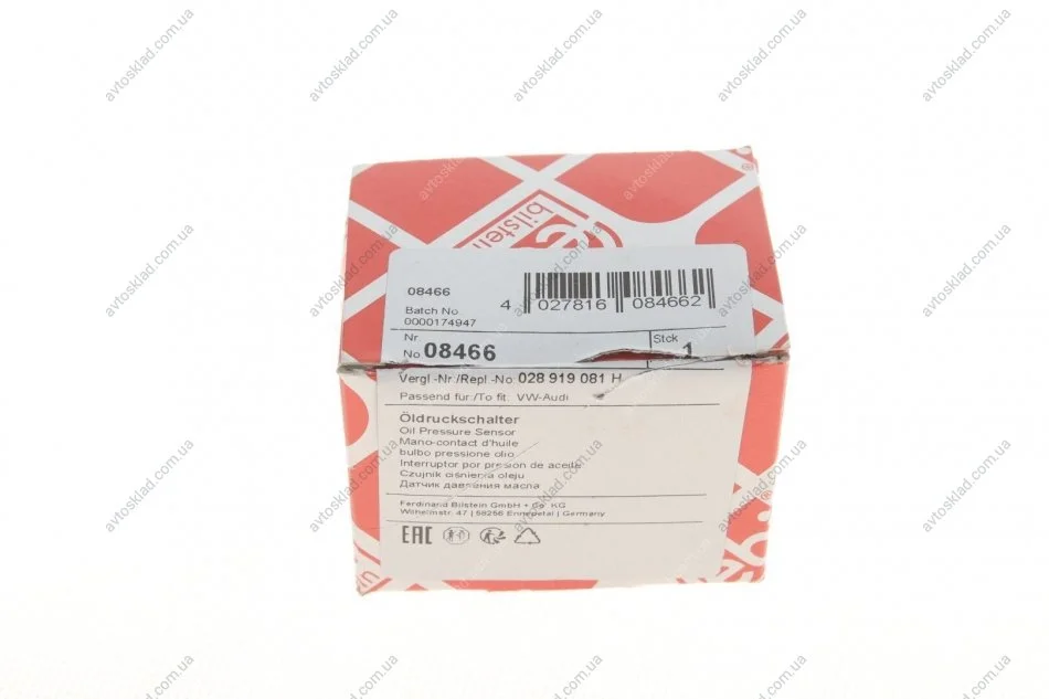 Датчик давл. масла AUDI 80, 100, A6, VW GOLF 1-3, LT 28, PASSAT 1-3, T4 (FEBI) FEBI BILSTEIN 08466