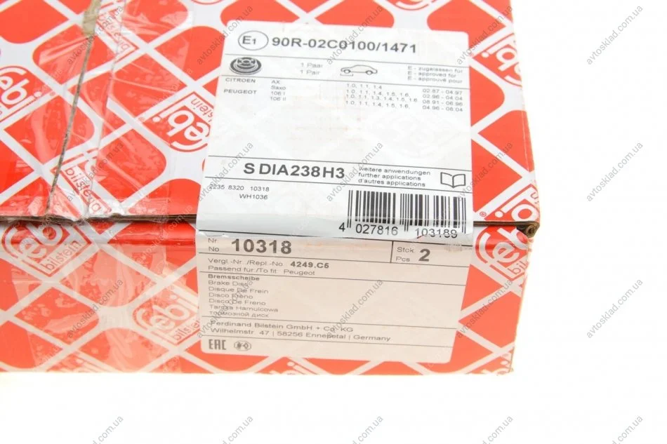 FEBI CITROEN Тормозной диск передний AX,Saxo,Peugeot 106 86- FEBI BILSTEIN 10318