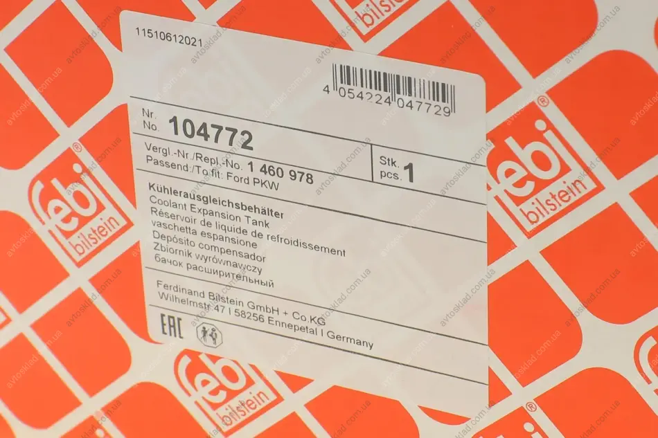 Бачок расширительный FORD GALAXY 06-15, MONDEO IV 07-15, S-MAX 06-15 FEBI BILSTEIN 104772