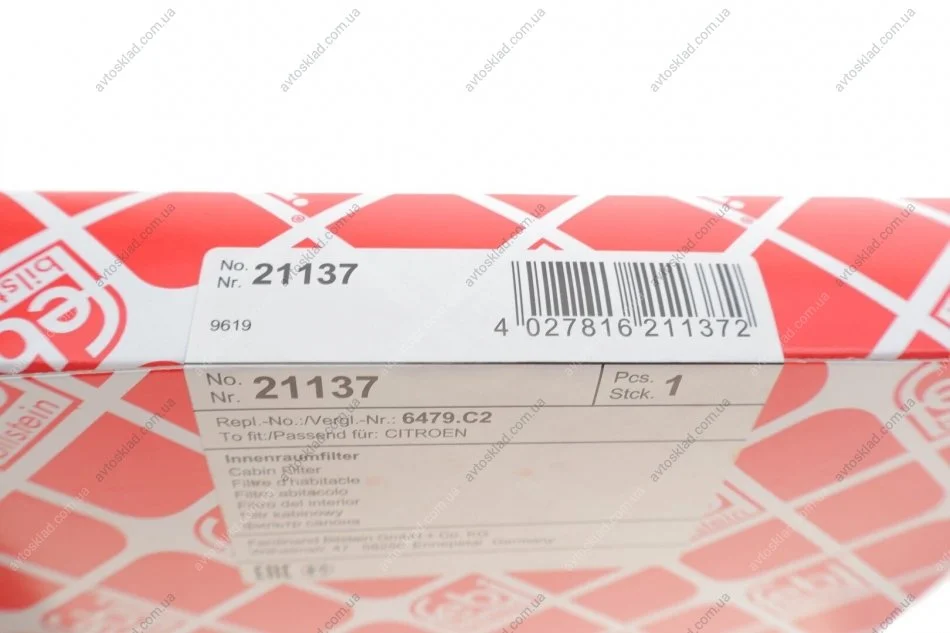 FEBI PEUGEOT Фильтр воздушный салона 307 01- FEBI BILSTEIN 21137