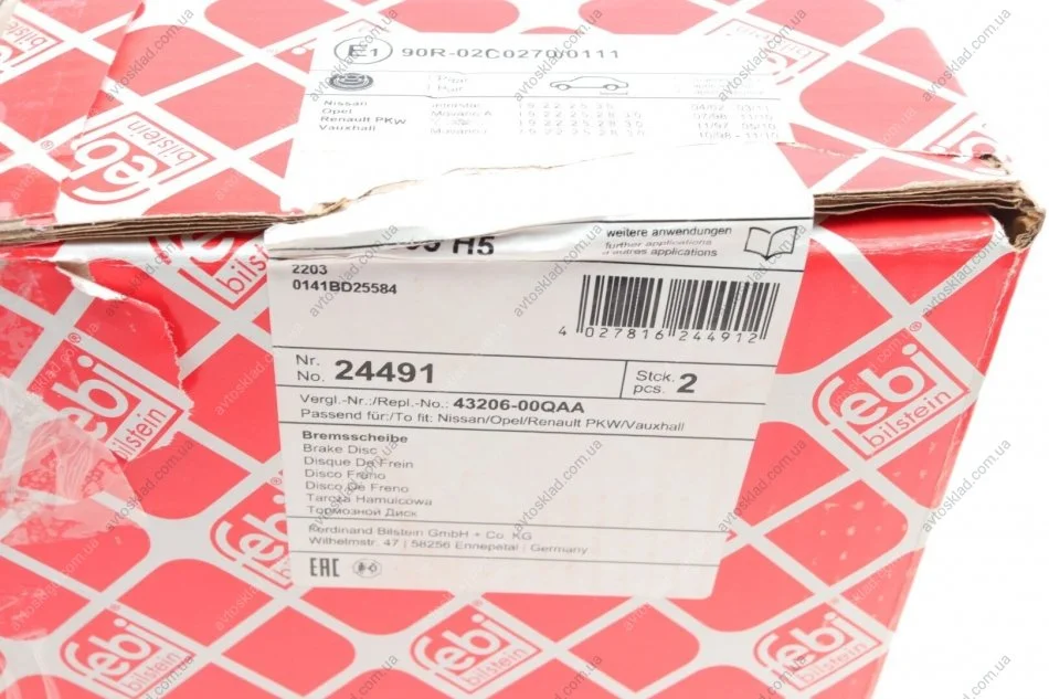 Диск тормозной NISSAN, OPEL, RENAULT, задн. (FEBI) FEBI BILSTEIN 24491
