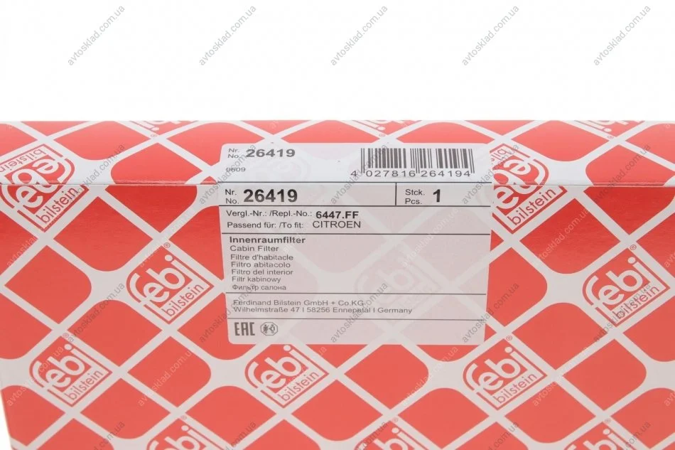 FEBI CITROEN Фильтр возд.салона Xsara Picasso 99- FEBI BILSTEIN 26419