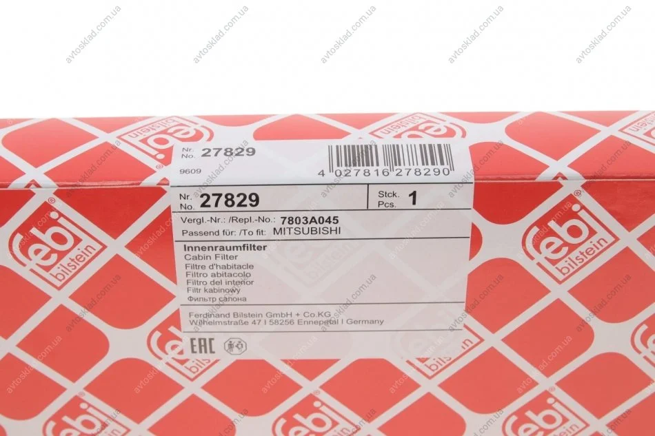 Фильтр воздуха салона FEBI BILSTEIN 27829