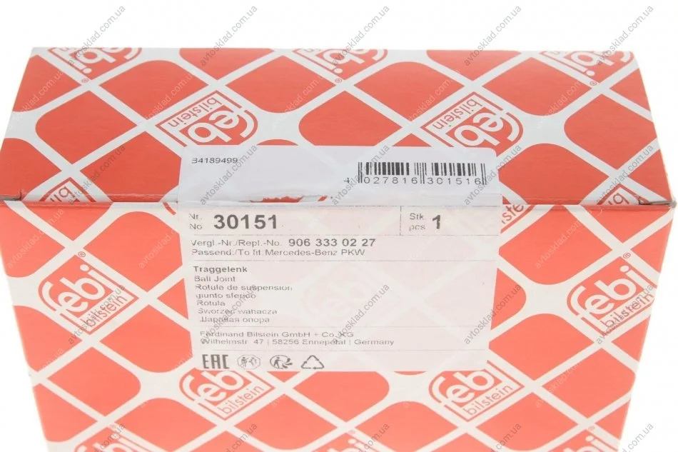 Шаровая опора л/п DB SPRINTER VW CRAFTER 2006- FEBI BILSTEIN 30151