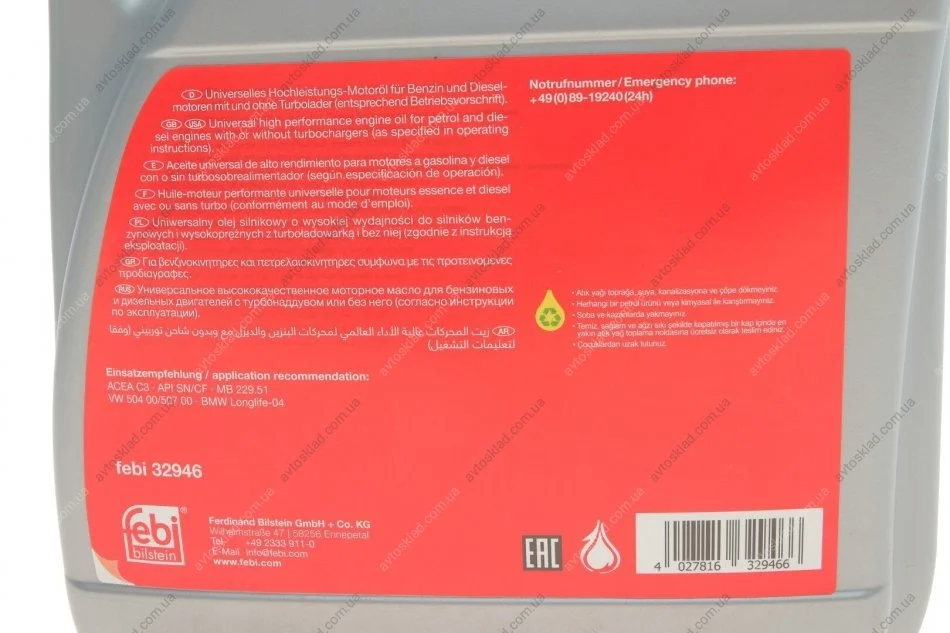 Масло моторное Febi Engine Oil Long Life Plus 5W-30 (4 л) FEBI BILSTEIN 32946