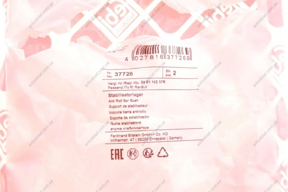 Втулка стабилизатора передн.л/п DACIA/RENAULT DUSTER 10- FEBI BILSTEIN 37726