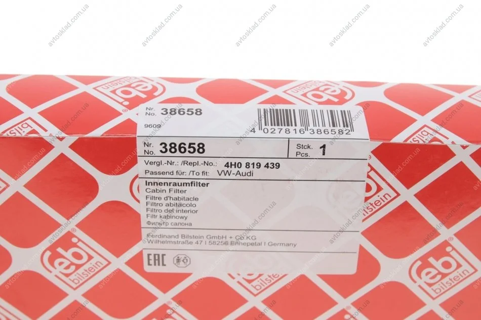 FEBI AUDI Фильтр салона (уголь) A6 10- FEBI BILSTEIN 38658