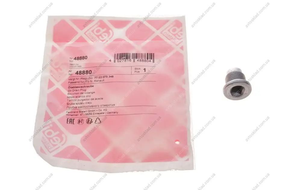 Маслосливная пробка Trafic/Vivaro/Movano 16x1.5mm FEBI BILSTEIN 48880
