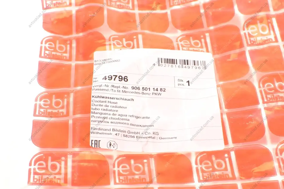 Патрубoк водяного охлаждения двигателя, снизу, от двигателя к радиатору MB OM651 Sprinter 06- (FEBI BILSTEIN 49796