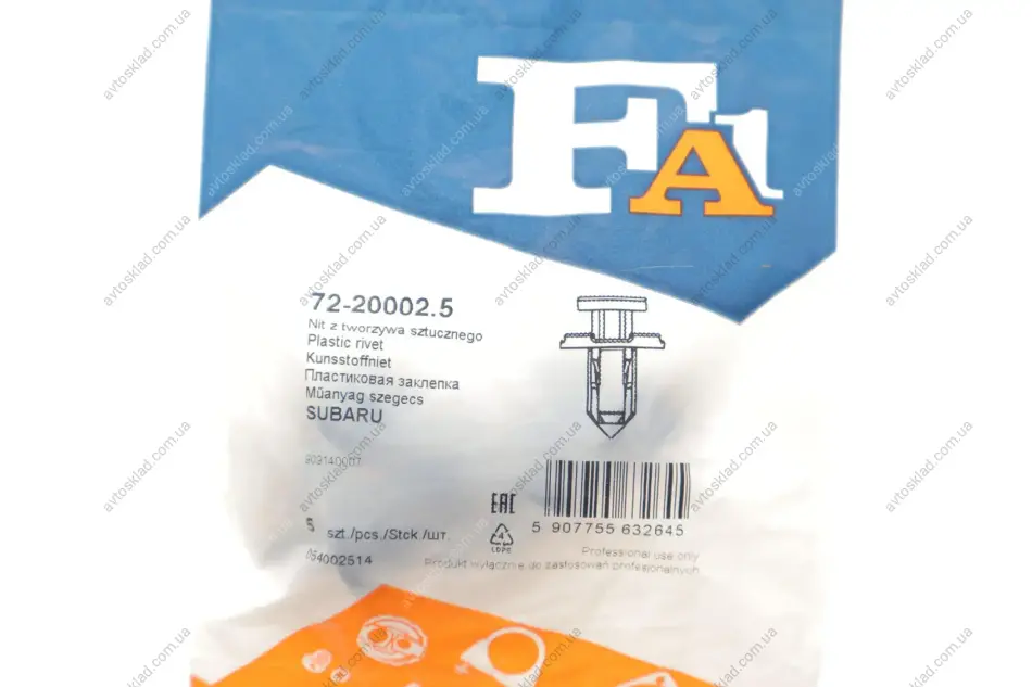 Кліпса кріплення (затискач) Fischer Automotive One (FA1) 72-20002.5