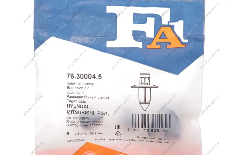 Розпірна заклепка Fischer Automotive One (FA1) 76-30004.5
