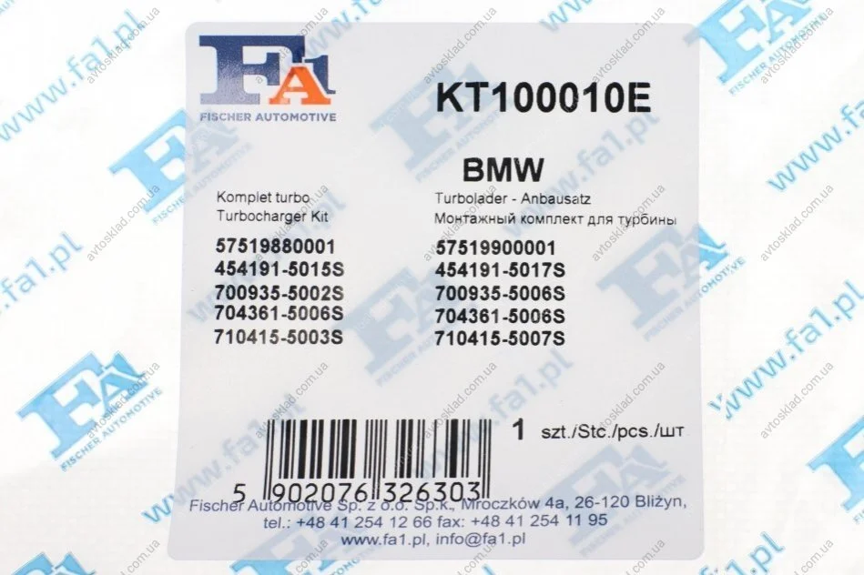 Аналоги "KT100010E Fischer Automotive One (FA1)":
