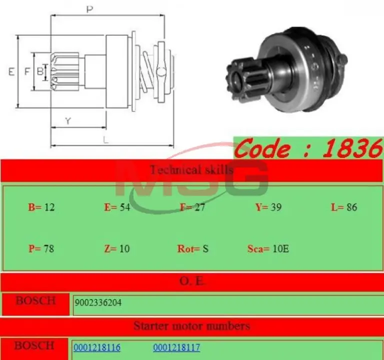 Бендикс стартера Ghibaudi 1836