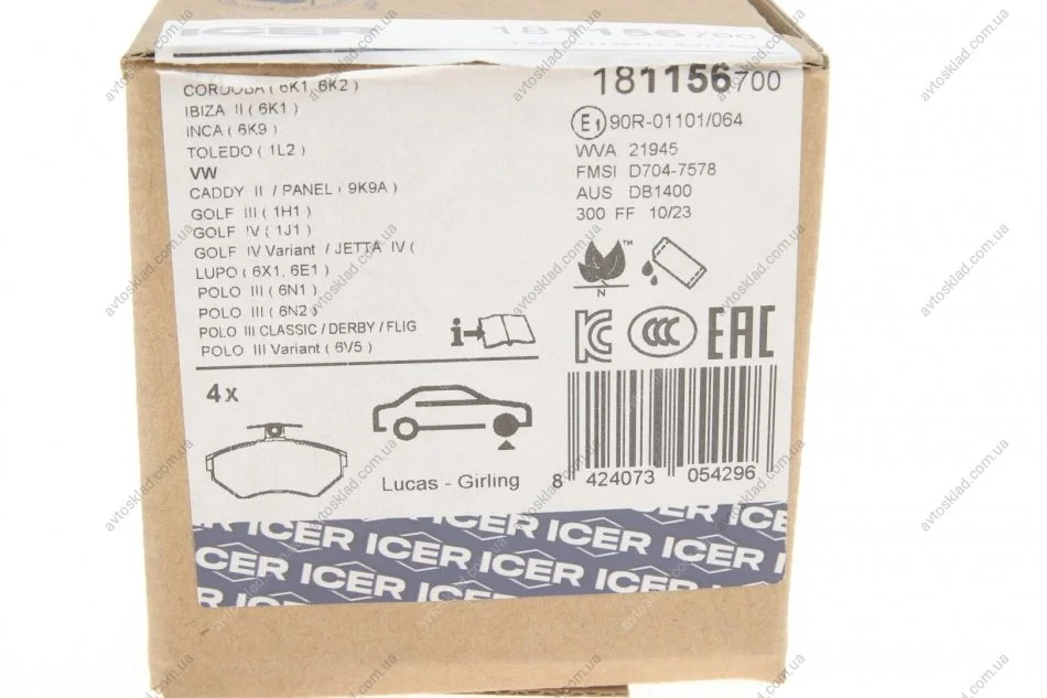 Колодки тормозные ICER 181156-700