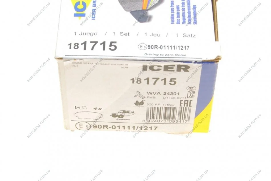 Комплект тормозных колодок, дисковый тормоз ICER 181715