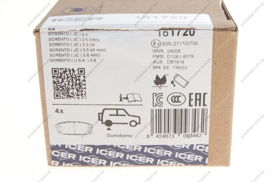 Колодки тормозные ICER 181720