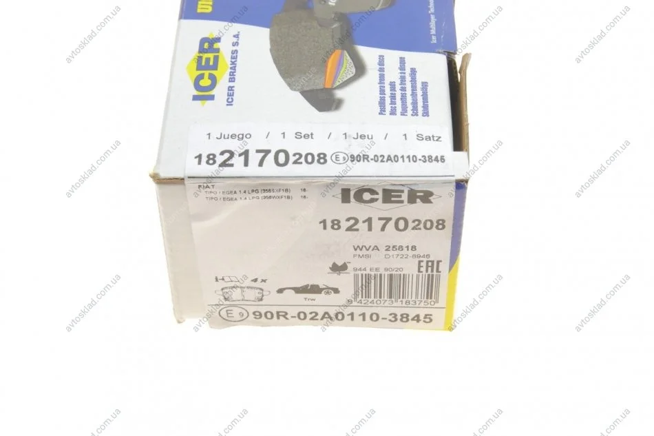 Комплект гальмівних колодок (дискових) ICER 182170-208