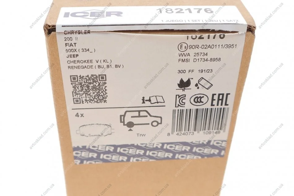 Комплект гальмівних колодок (дискових) ICER 182176