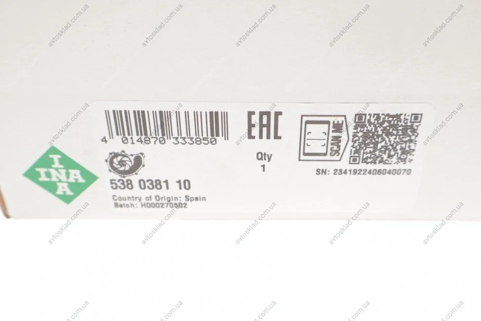 Помпа води INA 538 0381 10