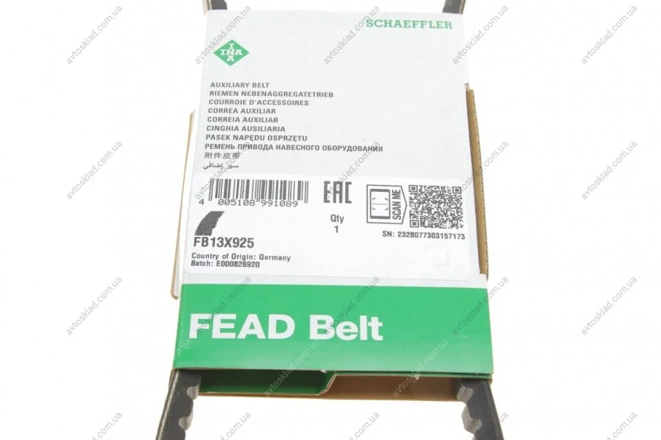 Ремінь генератора клиновий INA FB 13X925