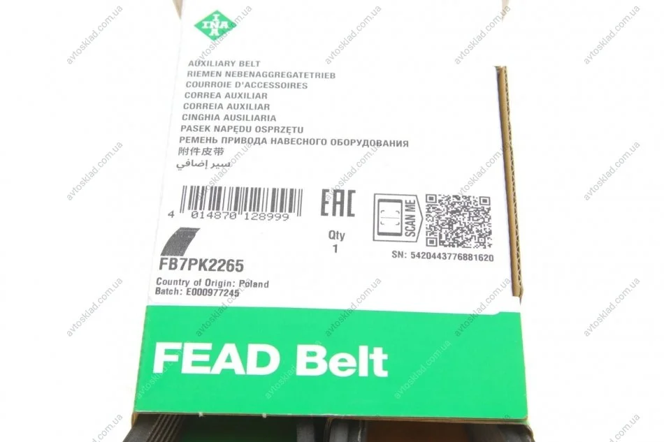 Ремень генератора поликлиновый INA FB 7PK2265