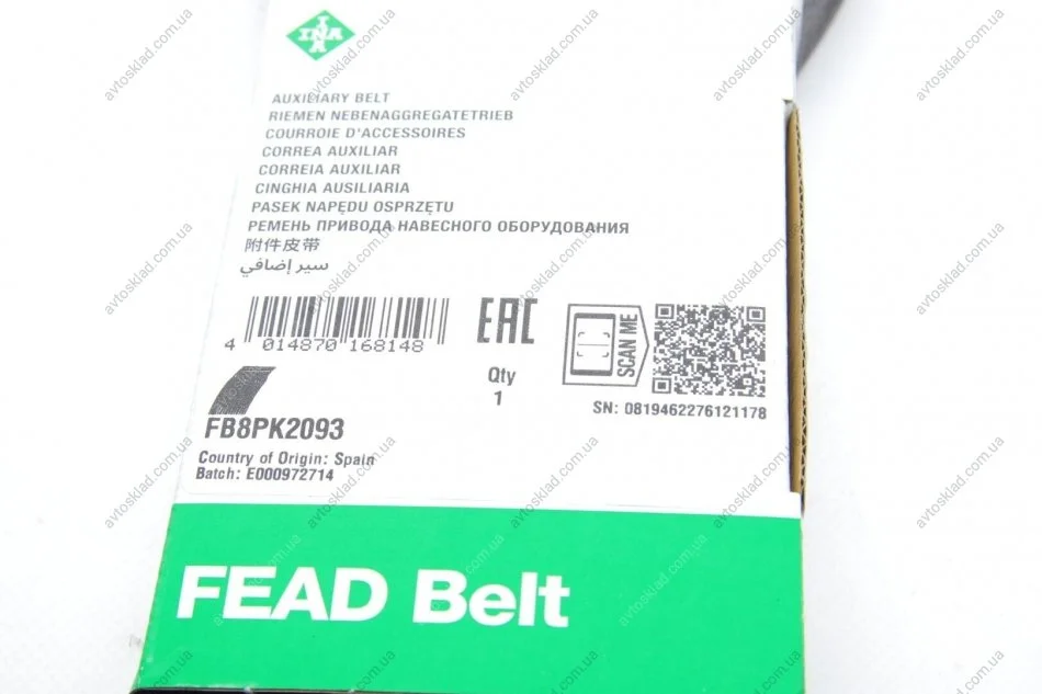 Ремень генератора поликлиновый INA FB 8PK2093