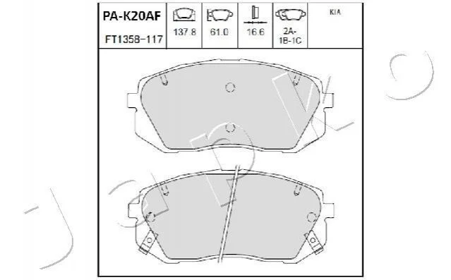 Комплект тормозных колодок, дисковый тормоз JAPKO 50K20