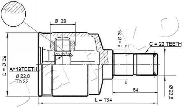 ШРУС Матиз внутренний 0.8/1.0 (98-) (нар 22/вн 19) JAPKO 62W21