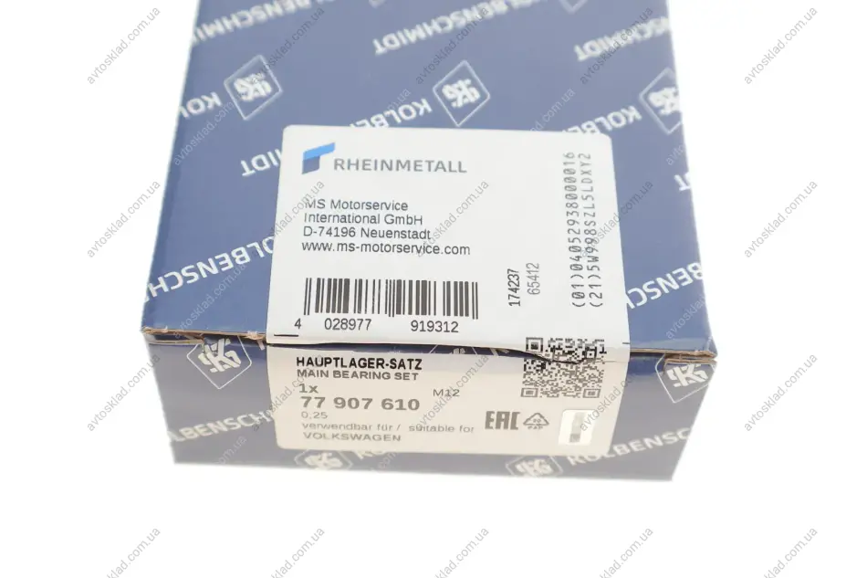 Вкладыши коленвала 0.25 (к-кт 10 шт.).) VW Transporter V/Audi A3,A4 KOLBENSCHMIDT 77 907 610