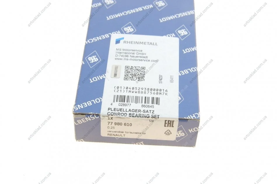 Вкладыши шатунные 0.25 Renault 2.2D/2.5D G9T/G9U KOLBENSCHMIDT 77 980 610