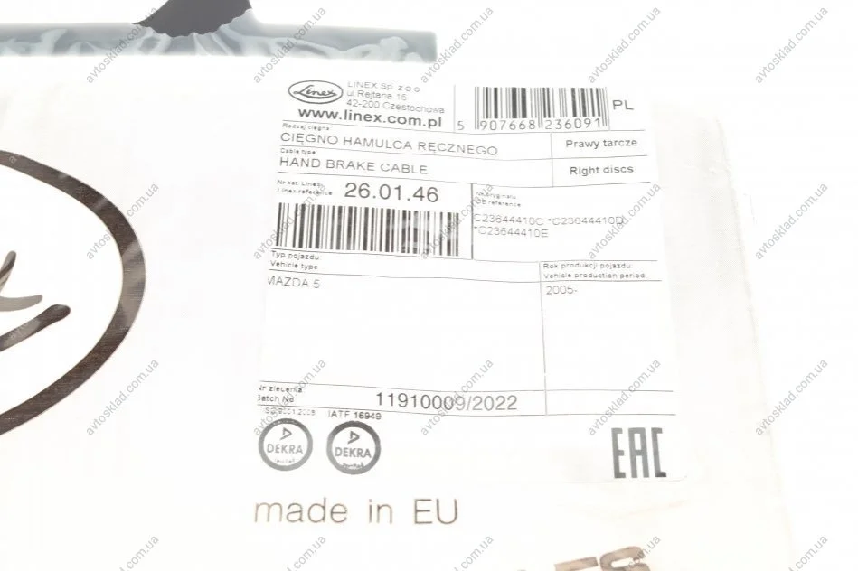 LINKA HAMULCA MAZDA 5 05- 1810/1680 PRAWA LINEX 26.01.46