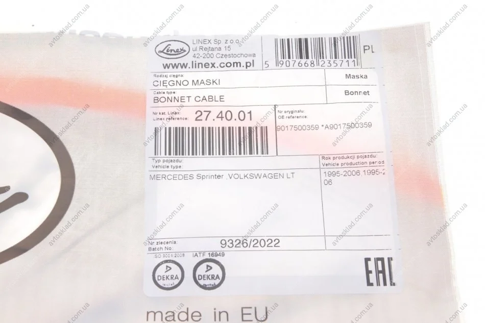 Трос капота DB Sprinter 314,308CDI,311CDI,313CDI,316CDI LINEX 27.40.01