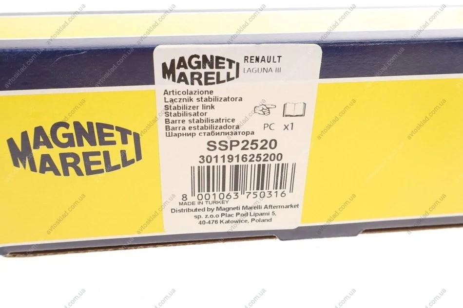 RENAULT Тяга стаб.передн.лев./прав.Laguna II 07- MAGNETI MARELLI 301191625200