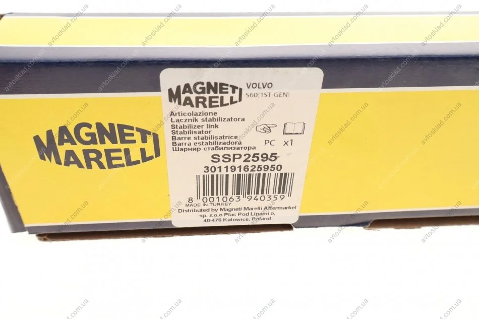 VOLVO Тяга стабилизатора передн.лев./прав.S60, S80, V70, CX70, CX90, 98- MAGNETI MARELLI 301191625950