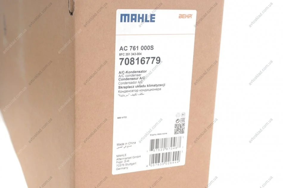 Радиатор кондиционера MAHLE / KNECHT AC 761 000S