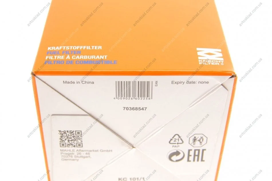 Фильтр топлива HYUNDAI ACCENT III 1.5CRDI 11/06-, SANTA FE 2.2CRDI 09/06-, SONATA 2.0CRDI 11/06- MAHLE / KNECHT KC 101/1