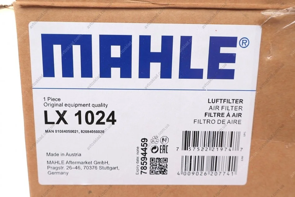 Фильтр воздушный MAN (TRUCK) (Knecht-Mahle) MAHLE / KNECHT LX1024